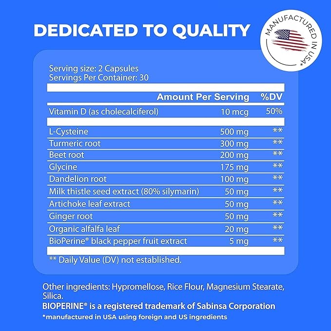 Liver Health Formula is packed with scientifically-backed ingredients like Milk Thistle, Turmeric root, and L-Cysteine, known for their liver-enhancing properties, anti-inflammatory effects, and oxidative stress reduction. These ingredients work synergistically to boost fat-burning, improve energy levels, aid digestion, and promote cellular repair in the liver.